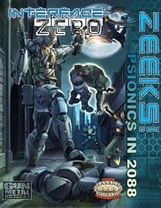 Tytuł: Zeeks: Psionics in 2088 Linia wydawnicza: Interface Zero Autorzy: James L Cambias, David Jarvis, Curtis and Sarah Lyon Ilustracje: Eduardo Brolo, Ryan Rattan, Jason Walton Wydawca oryginału: Gun Metal Games/Cubicle 7 Entertainment Data wydania oryginału: 2011 Miejsce wydania oryginału: USA Liczba stron: 46 Oprawa: Miękka Format: 8.5" x 11" ISBN-13: 978--85744-072-3